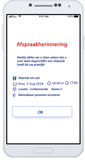 De Complan koppeling is ideaal voor patiënt en praktijk. De patiënt wordt altijd herinnerd aan de afspraak via de App en/of via de email. Daarnaast wordt de patiënt via 2 kanalen herinnerd aan de afspraak, namelijk via de mail en via de App. De patiënt heeft de keuze om per mail of per App herinnerd te worden aan de afspraak. Afspraken en de locatie van de afspraak worden automatisch in de agenda van de patiënt gezet! Een veel gehoorde vraag van patiënten en praktijken.