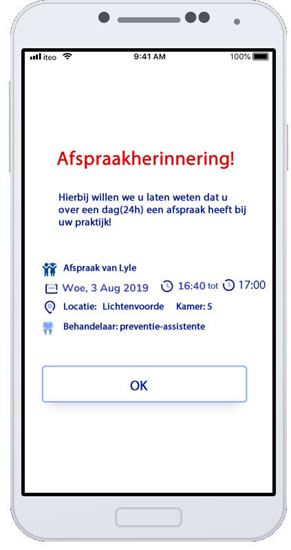 Met de geïntegreerde afspraakmodule kunnen patiënten op een veilige manier koppelen met Complan. Koppelen met uw tandartspraktijk houd in dat patiënten ten alle tijde hun afspraken bij de hand hebben. Nu van de volwassen patiënt en straks na de volgende update ook van de kinderen. Uit onze pilot is gebleken dat er een zeer hoge bereidheid is om de MTA te downloaden als afspraken geïntegreerd zijn en overzichtelijk in de App staan .