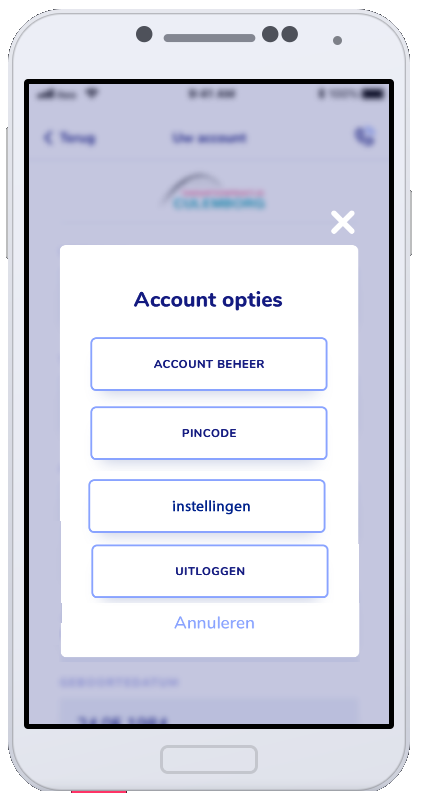 Patiënten maken eenvoudig een account aan net zoals men dat reeds gewend is bij Marktplaats of bij andere Apps. Vanuit het accountbeheer kan het account gewijzigd worden, kan men de App beveiligen met een zelf uitgekozen pincode, instellen hoe men herinneringen wilt ontvangen van de afspraak en uitloggen.