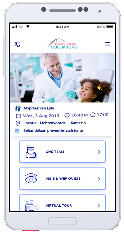 Heeft u meer dan één praktijk? Of heeft u een praktijk met meerdere locaties en uw patiënten worden in deze verschillende locaties behandeld? Dan hebben we goed nieuws! In dat geval krijgt de patiënt de locatie en behandelkamer in de afspraak te zien krijgt. Uw patiënten kunnen dan indien u dit wenst met één geïntegreerde praktijk in de App werken, maar dit hoeft niet persé. Of u heeft verschillende praktijken, maar de patiënten worden voor het grootste gedeelte op één locatie behandeld? Dan kunnen we voor u elke locatie integreren in de Mijn Tandarts App.
