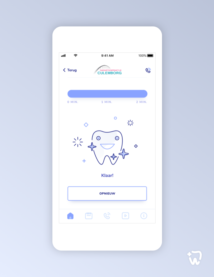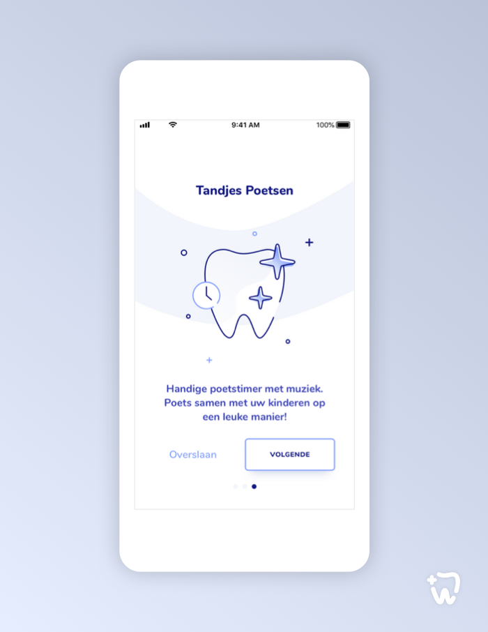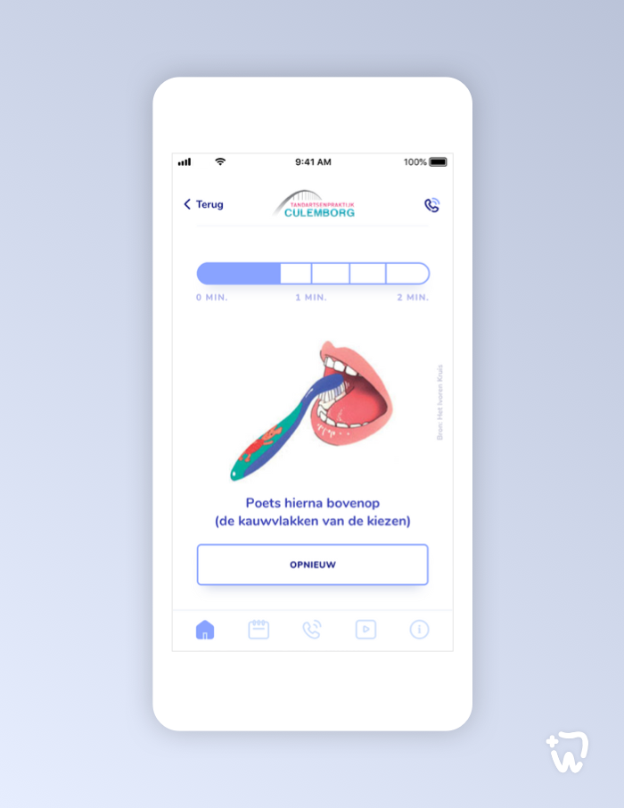– In de Mijn Tandarts App is een poetstimer ingebouwd met het tandjes poetsen lied van Marjolein Heine, een liedje dat precies twee minuten duurt.